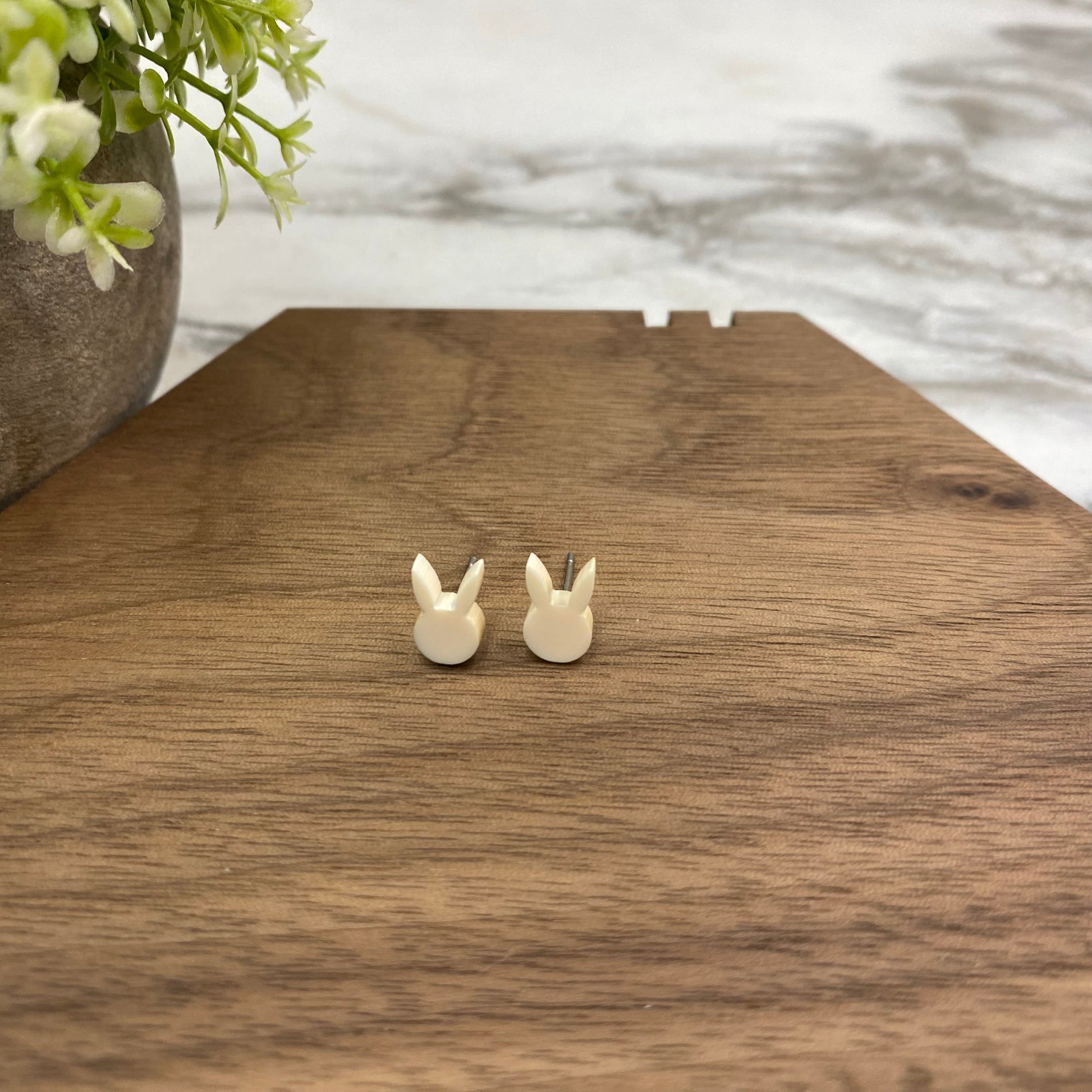 Acrylic Stud Earrings - Easter - Bunny Head - Cream