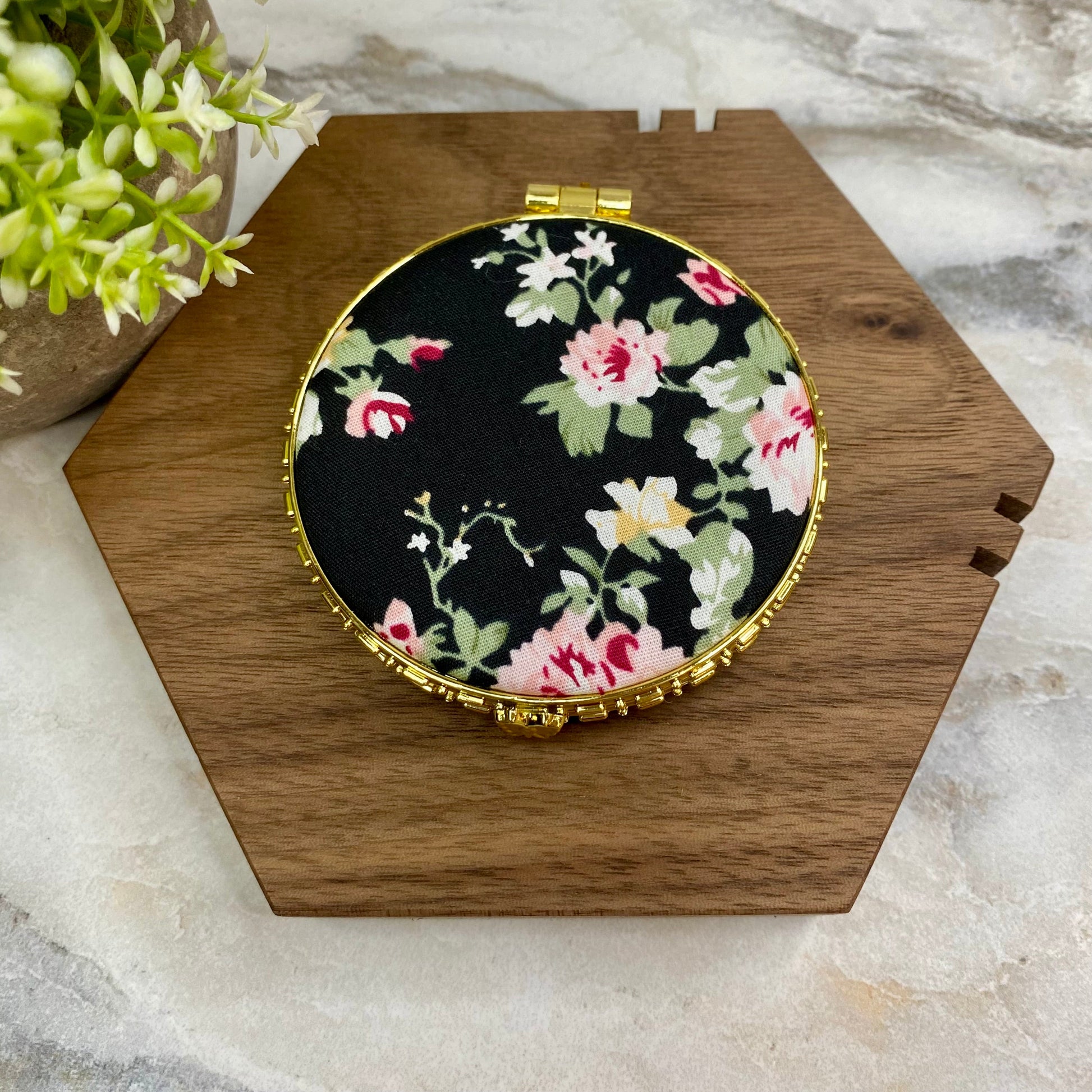 Compact Mirror - Black Floral