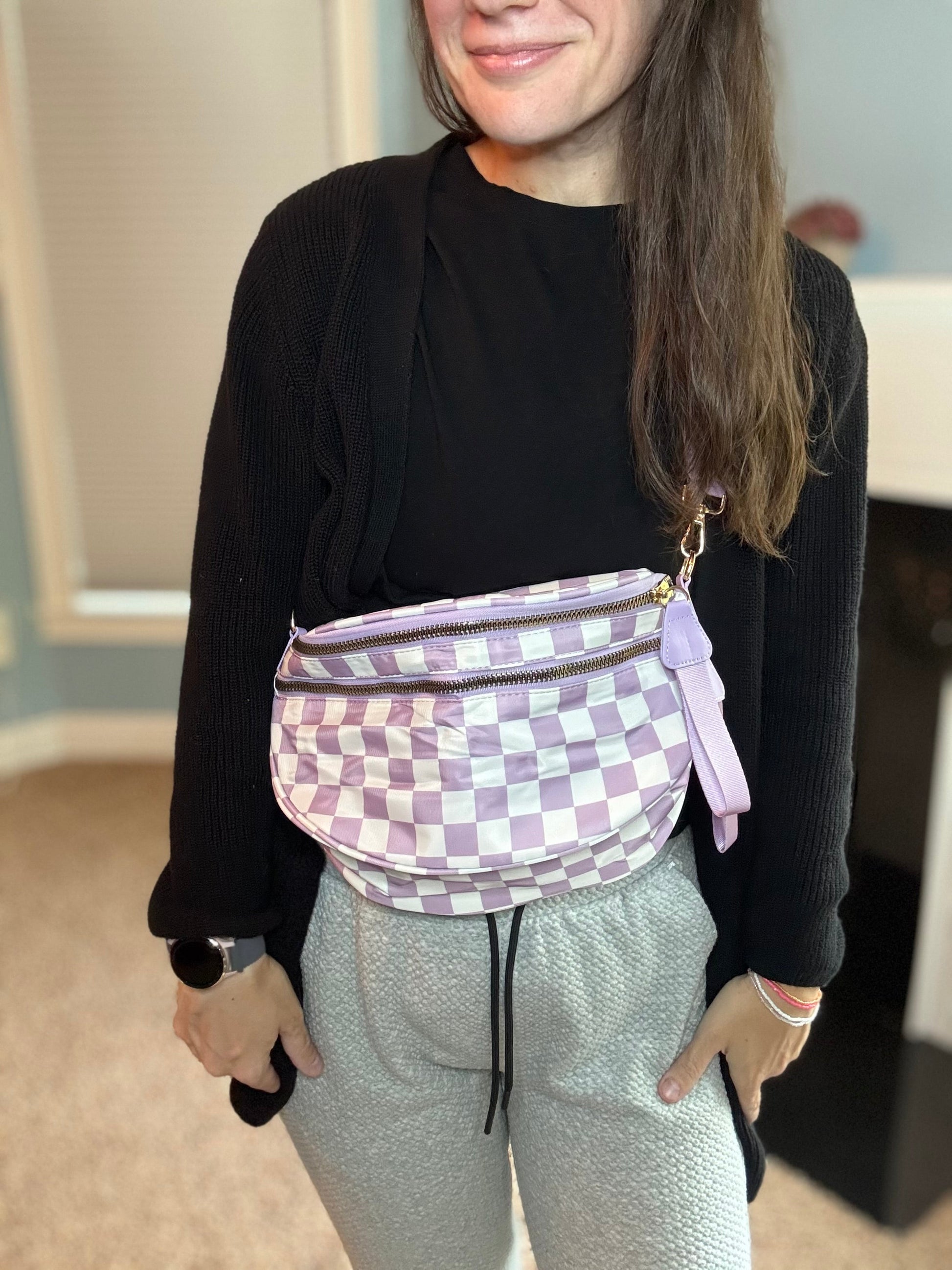 The Roni Nylon Crossbody - Checkered Light Purple