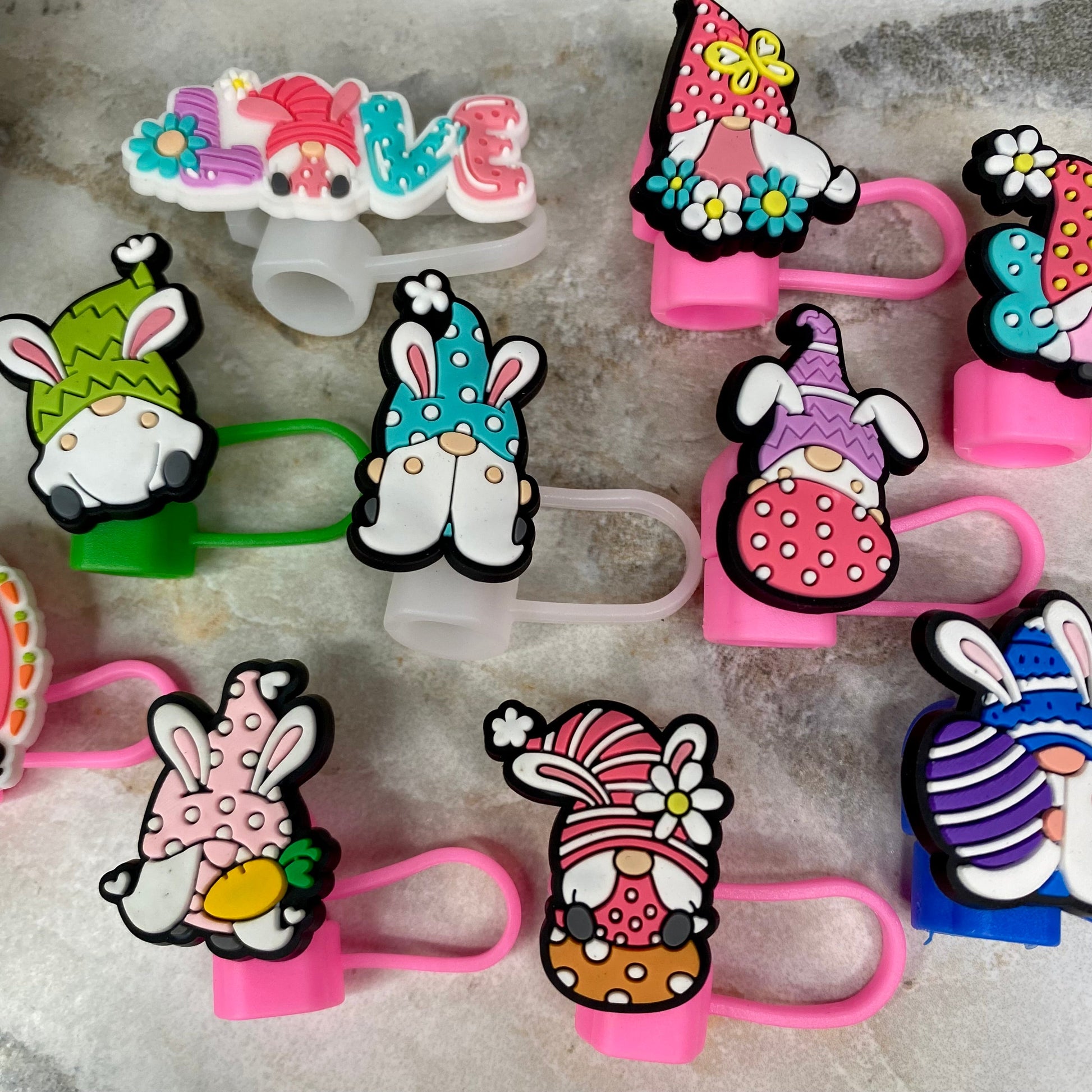 Silicone Straw Toppers Tumbler - Easter Gnome Mix