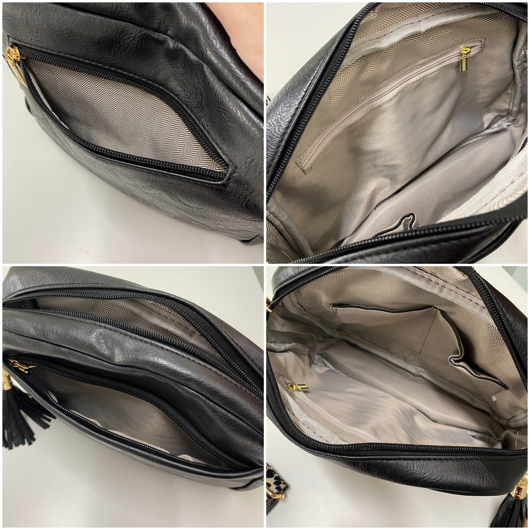 They feature 1 main zip compartment, as well as a front zip pocket for securely storing items! Make it a purse, travel bag, and so much more. Also comes with an animal print shoulder/crossbody strap.